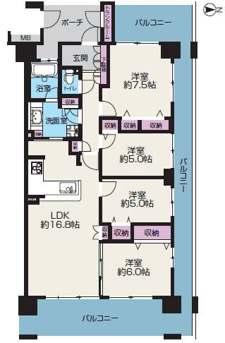 - バルコニー面積