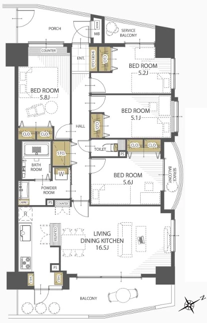 - 間取り/専有面積