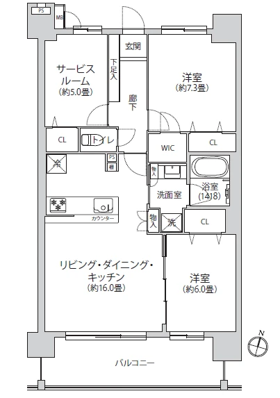 3LDK+WIC 68.10㎡ 1981年02月 3階 地上7階 南東