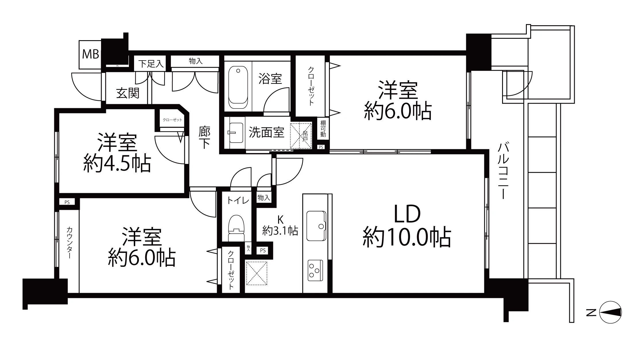 - バルコニー面積