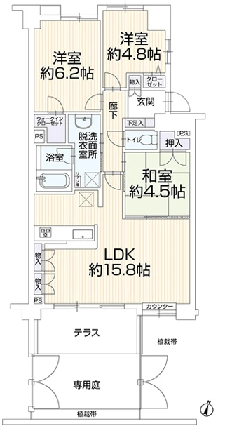- 3LDK+WIC+専用庭