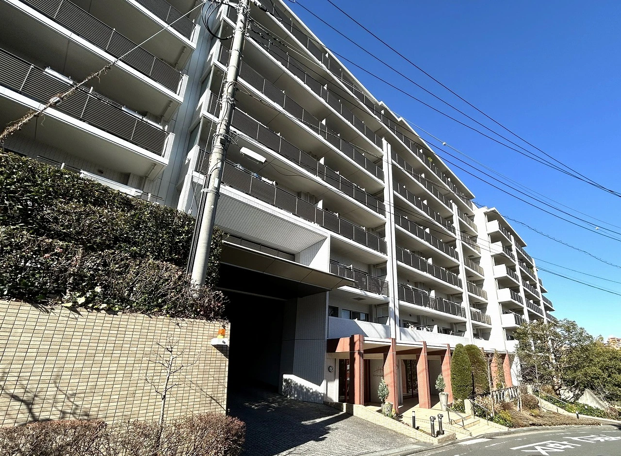 ・東急田園都市線「あざみ野」駅より徒歩12分。地上9階建ての大規模マンションとなっております。