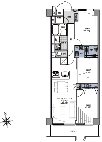 - 3LDK+2WIC/68.05㎡