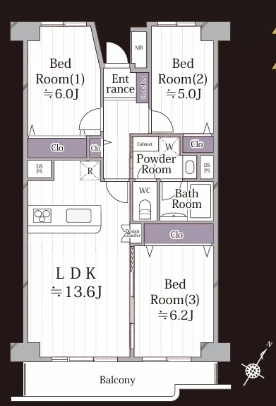 3LDK+WIC 77.78㎡ 1987年08月 1階 地上5階 南東