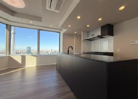 ・お部屋は33階部分の2LDK。都内を一望いただける広々なLDKで眺望陽当たり良好な角部屋です。