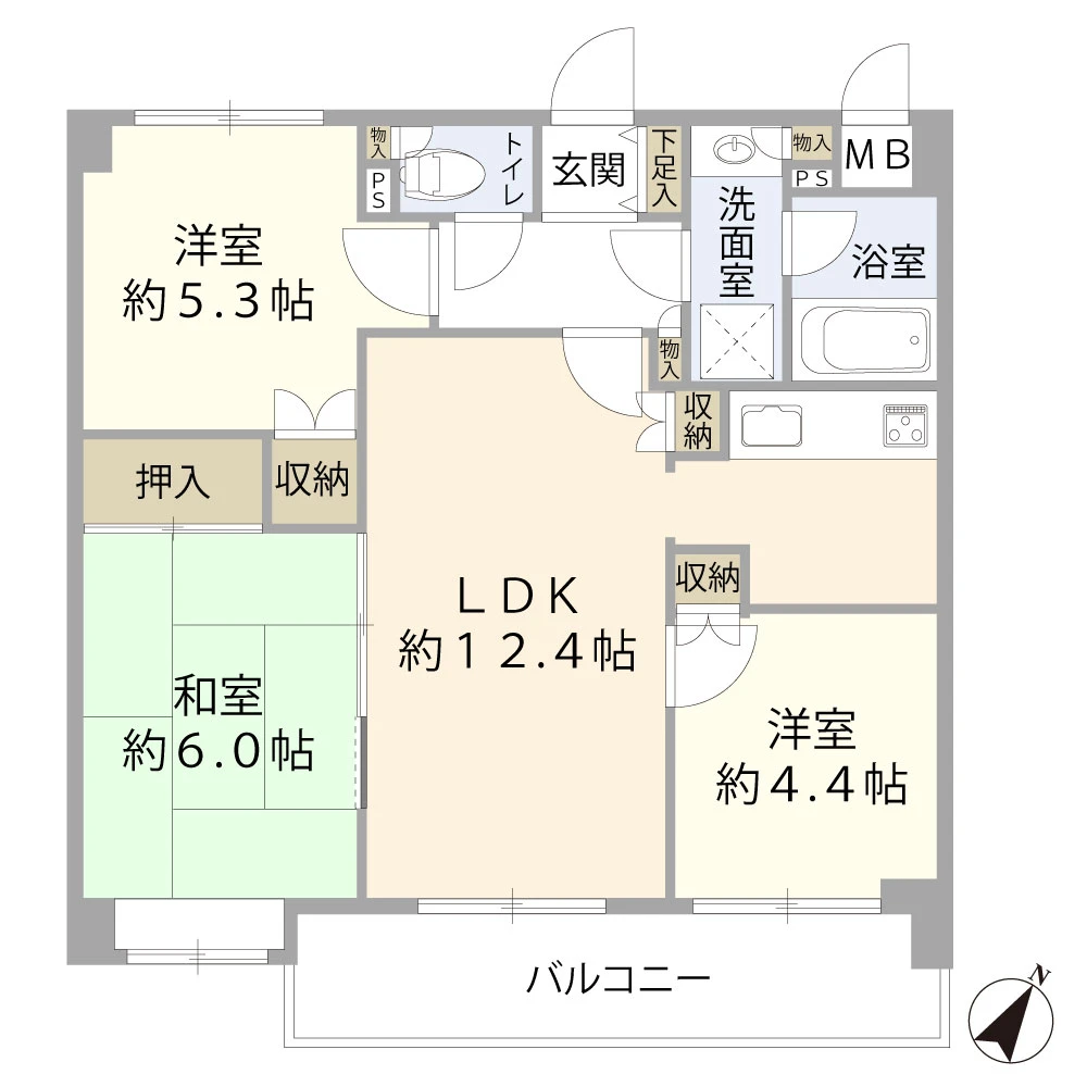 3LDK 63.44㎡ 1991年12月 4階 地上5階 東