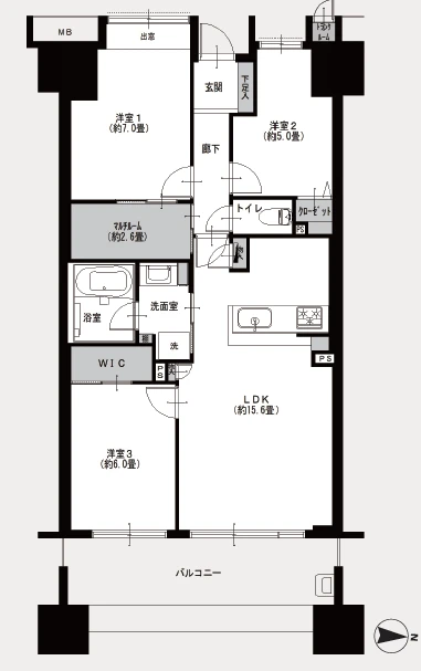 - 3LDK+WIC+マルチルーム