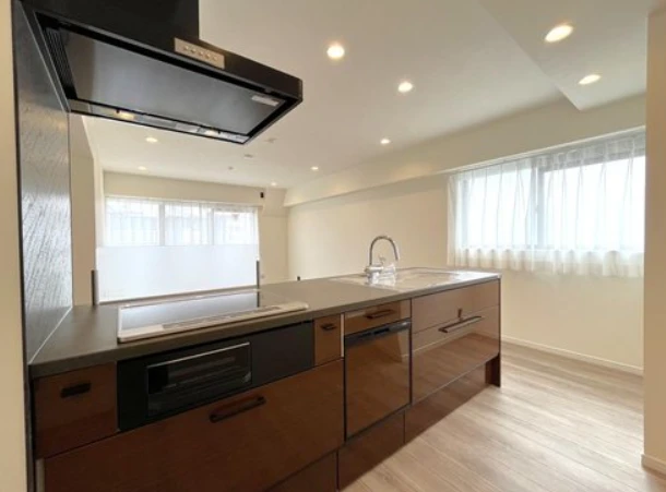 ・上層階のため眺望採光良好。会話も弾む対面キッチン搭載のLDKでリノベーション済の角部屋です。