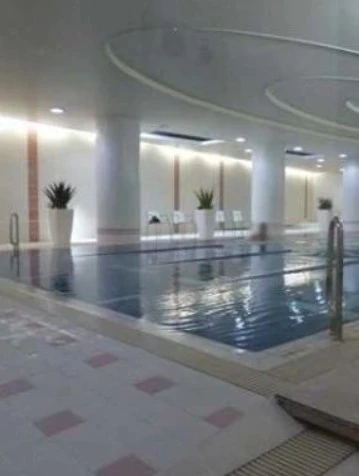 ・内廊下設計。プールやフィットネスジム、ゲストルームなど共用施設が充実しています。