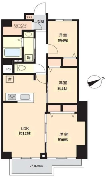 ・4階の南東向き、シューズインクローゼットを完備した3LDK。ディンクスにもお勧めの間取りです。