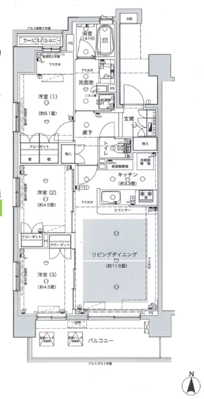 - バルコニー面積