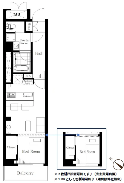 ※1DKとしても利用可能(建具は弊社指定)