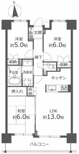 3LDK 60.22㎡ 1995年03月 6階 地上6階 南