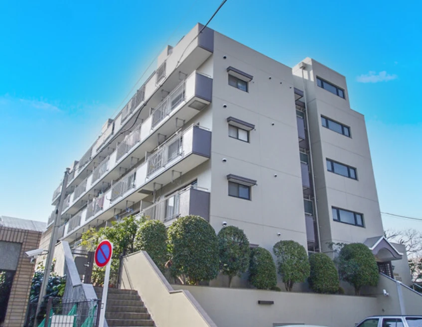 ・東急大井町線「尾山台」駅より徒歩16分。閑静な住宅地に位置する地上5階建てマンションです。