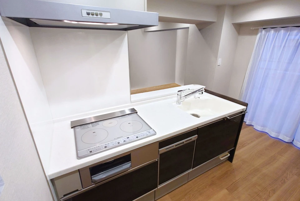 ・お部屋は8階部分の1LDKタイプ。SICや大型のWIC完備、キッチンは人気の対面式です。