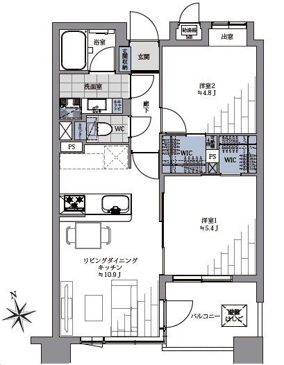 - 2LDK+2WIC