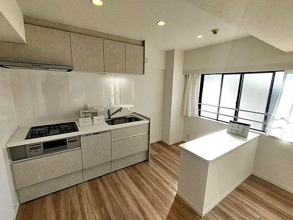 ・3階の角部屋、窓が多く陽当りや通風も良好です。キッチンにはカウンターもあり快適です。