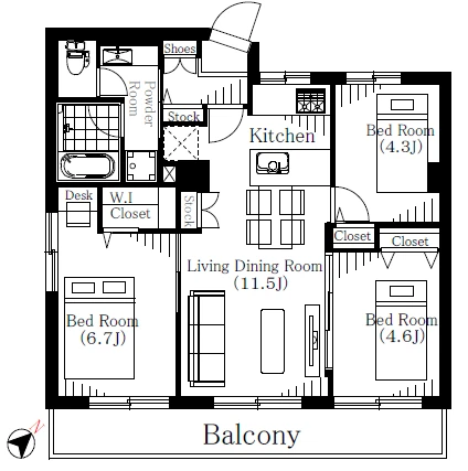 - 3LDK+WIC/57.74㎡