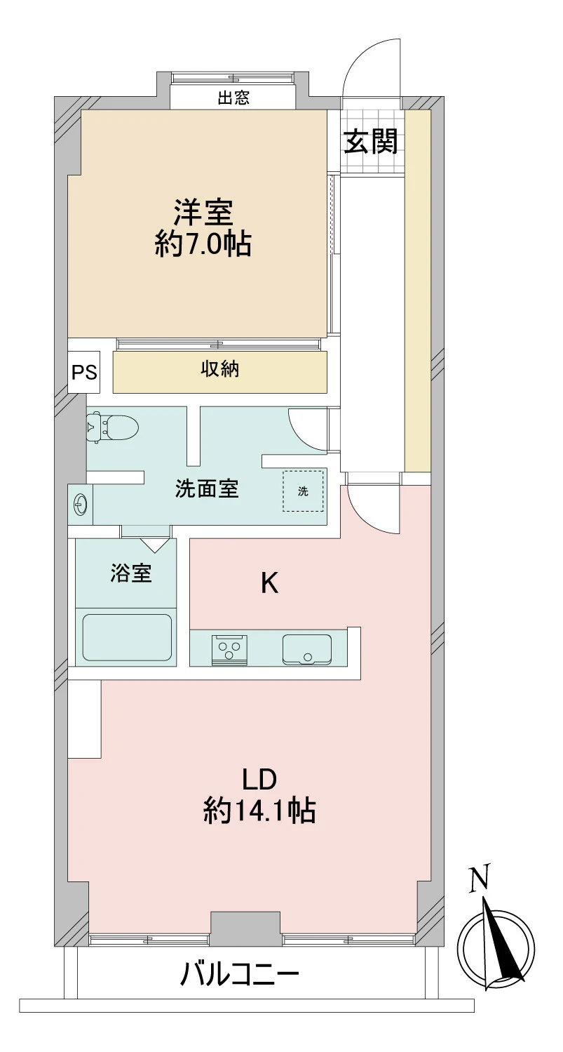 ・お部屋は5階部分の1LDKタイプ。南西向きバルコニーにつき陽当たり通風、眺望良好です。