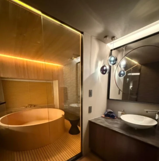 ・お部屋は1階部分のワンルーム。デザイン家具付きでおしゃれな浴室もあり快適なお部屋です。