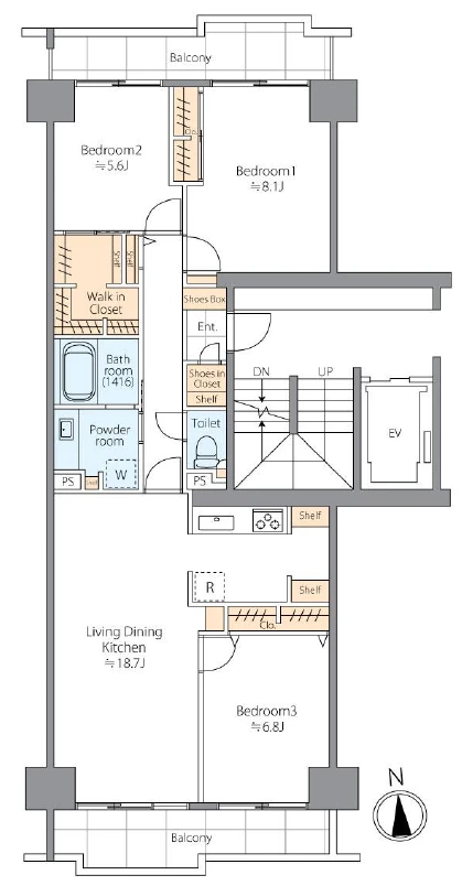 3LDK+WIC 86.56㎡ 1987年07月 11階 地上11階 南