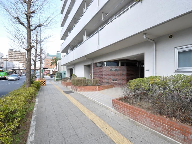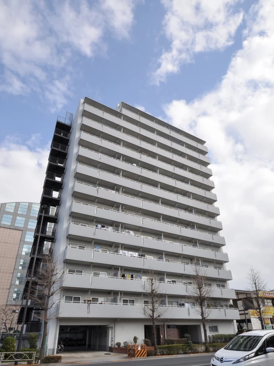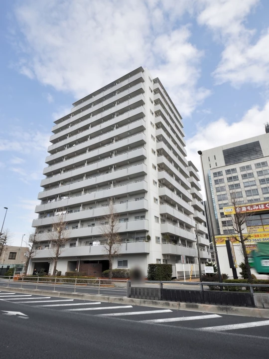 ・東武伊勢崎線「梅島」駅より徒歩9分の立地に建つ、総戸数90戸の13階建てマンションです。