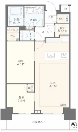 ・お部屋は10階部分の2LDKタイプ。WICやSIC、納戸付きでお部屋がスッキリ片付きます。
