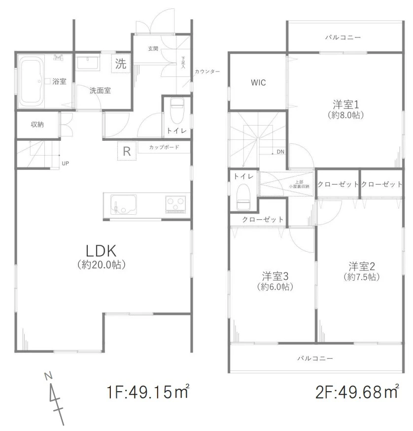 - 3LDK+WIC+小屋裏収納