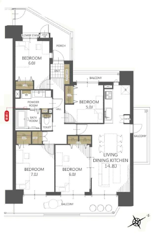 ・お部屋は6階部分の4LDK。各居室に収納有。すっきりしたお部屋でお過ごしいただけます。