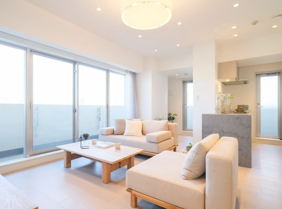 ・角部屋×22㎡のL字型バルコニーと、約20帖の広々としたLDKにつき開放感が抜群です。