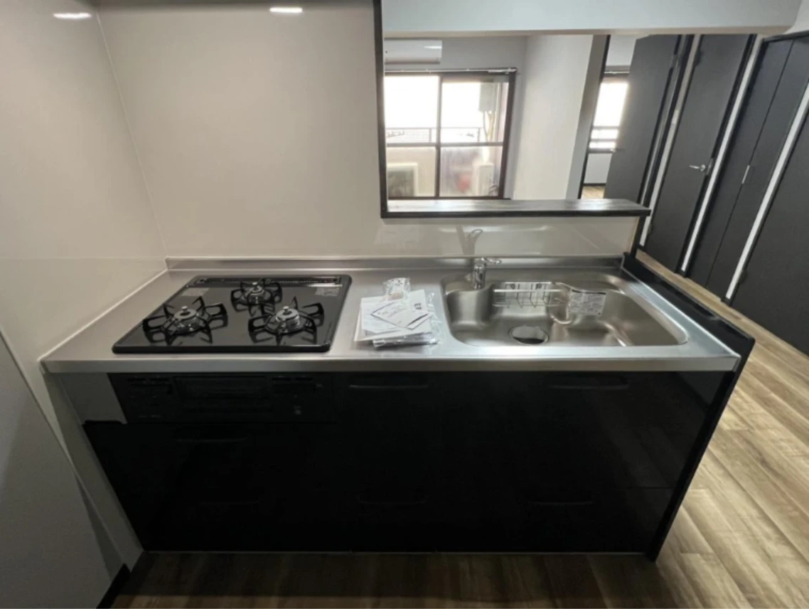 ・お部屋は2階部分の収納付き1LDKタイプ。キッチンは家族との会話が弾む人気の対面式です。