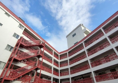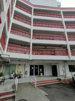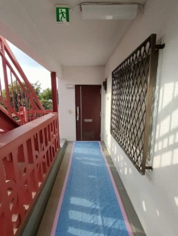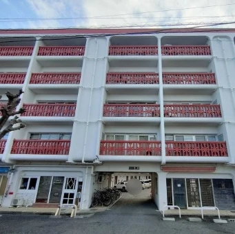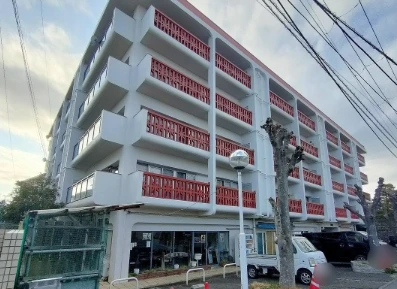 ・5階建て総戸数64戸のヴィンテージマンションです。白と赤の外観で目を引くマンションです。