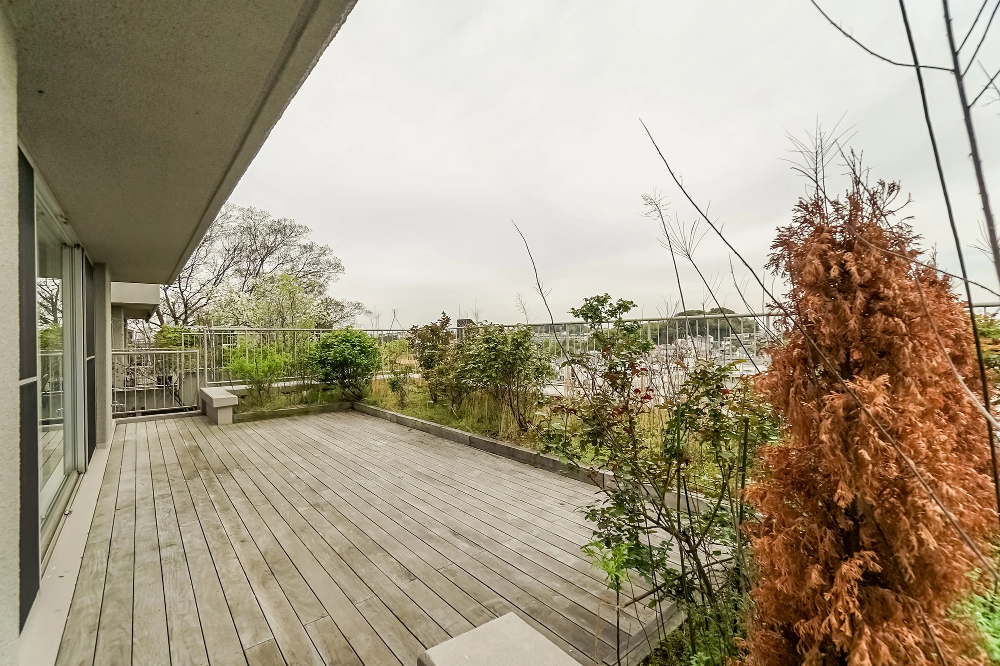 ・ルーフガーデン付きの角住戸。広々とした約29帖のLDKは明るく、開放感があります。